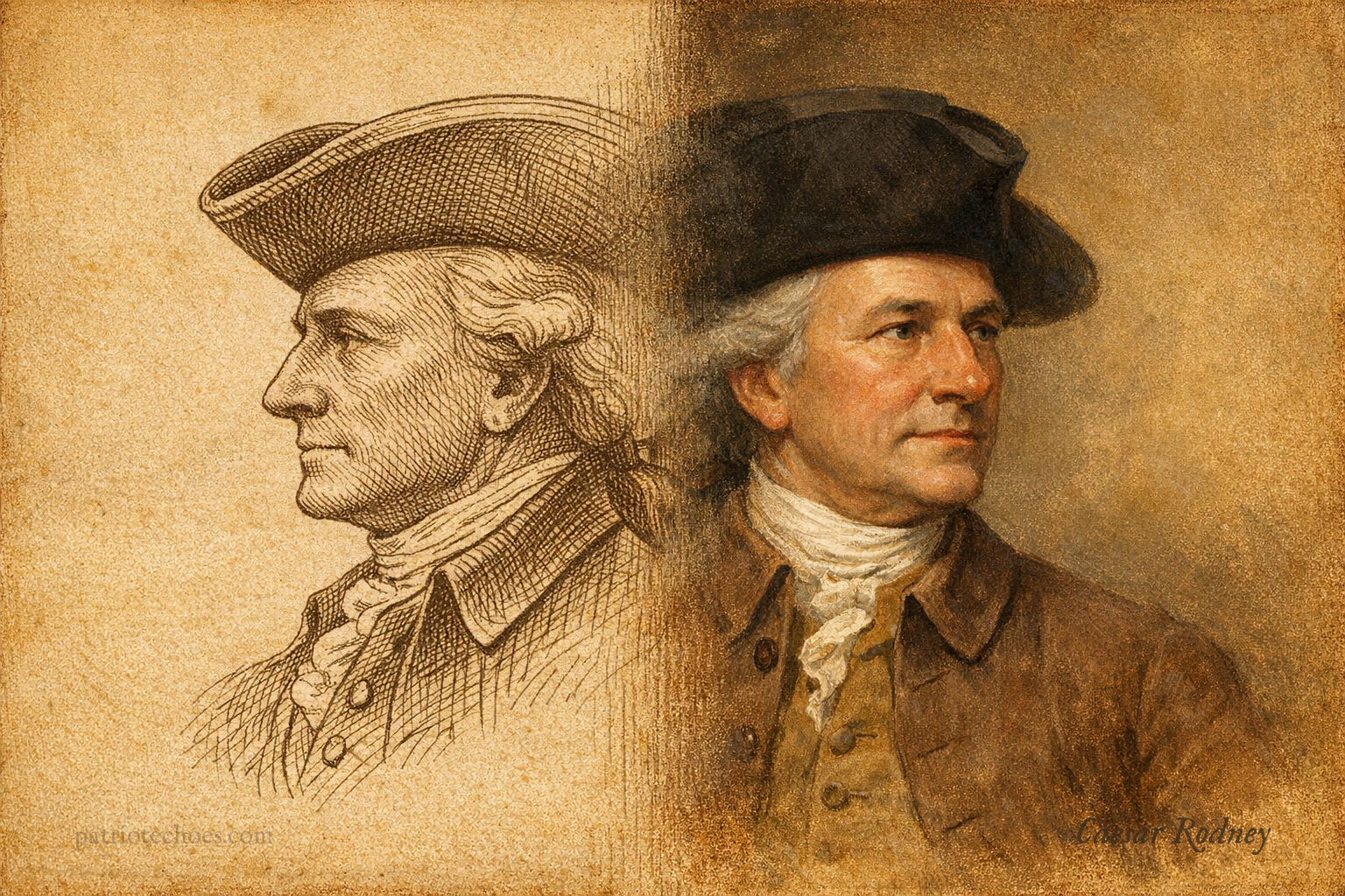 Delaware’s delegation was split. One delegate favored independence, another opposed it. The colony’s voice—and perhaps the fate of unanimity among the colonies—hung in the balance. At this decisive hour, he was absent from Philadelphia, engaged in militia duties in Delaware. Summoned with urgency, he undertook a legendary ride through the night, traversing rough roads and stormy weather to reach the Congress in time.