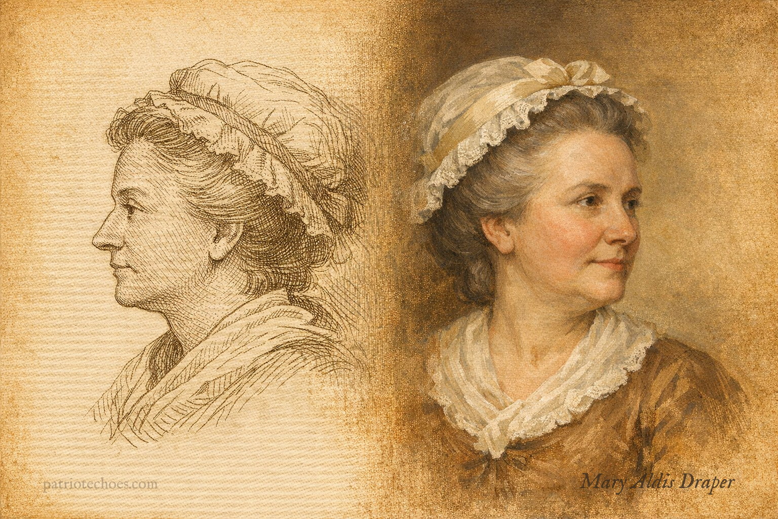 When the quarrel between Britain and her colonies at last burst into open war, Mary Aldis Draper did not take up arms, for the customs of her time forbade it; yet she entered the struggle with the tools and talents that lay within her reach. Her home became a small but steady outpost of the patriot cause, a place where the Revolution’s needs were translated into daily labor.